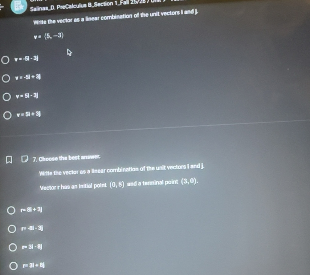 Solved: Salinas_D. PreCalculus B_Section 1_Fall 25/25 / Ulli Write the ...