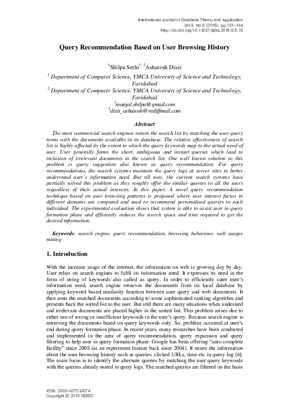 (PDF) Query Recommendation Based on User Browsing History