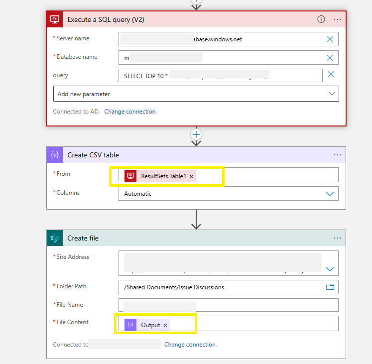 Azure Logic App Workflow SQL Execute Query to CSV file - Microsoft Q&A