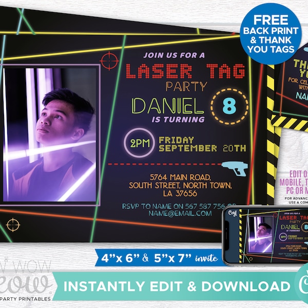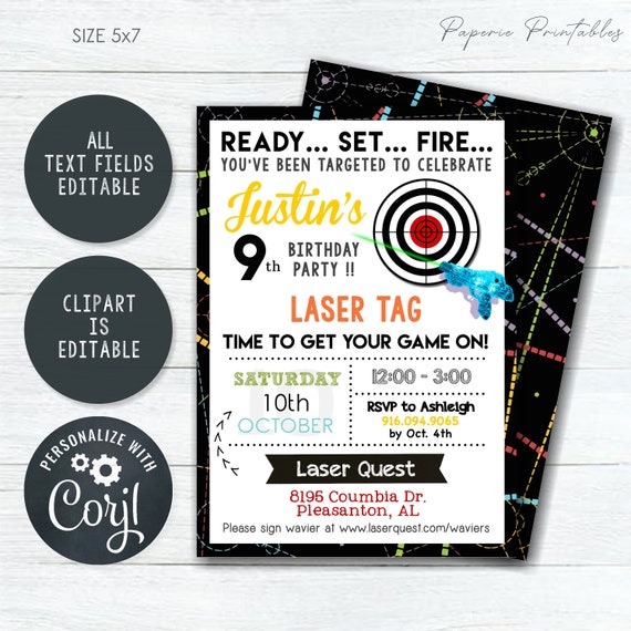 Laser Quest Birthday Party Invitation Template Templett File Design ...