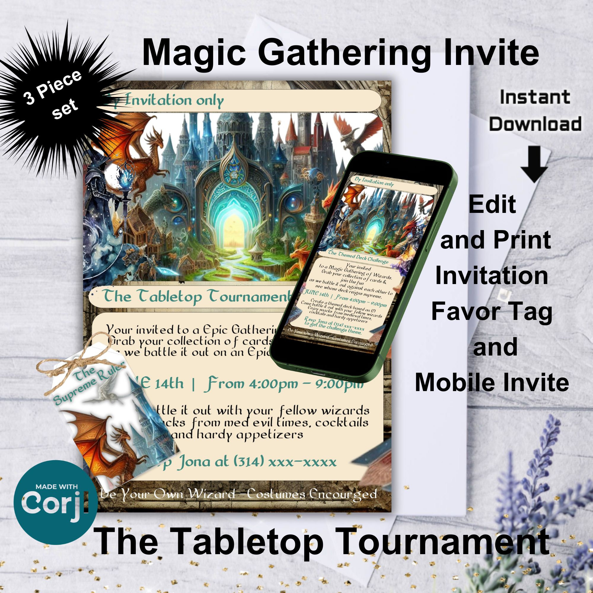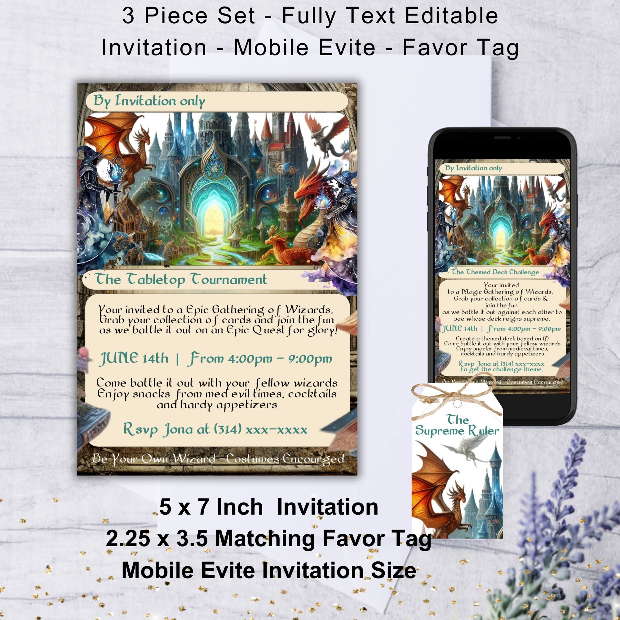Magic Gathering Quest Invitation, Tabletop Tournament Party Invitation ...