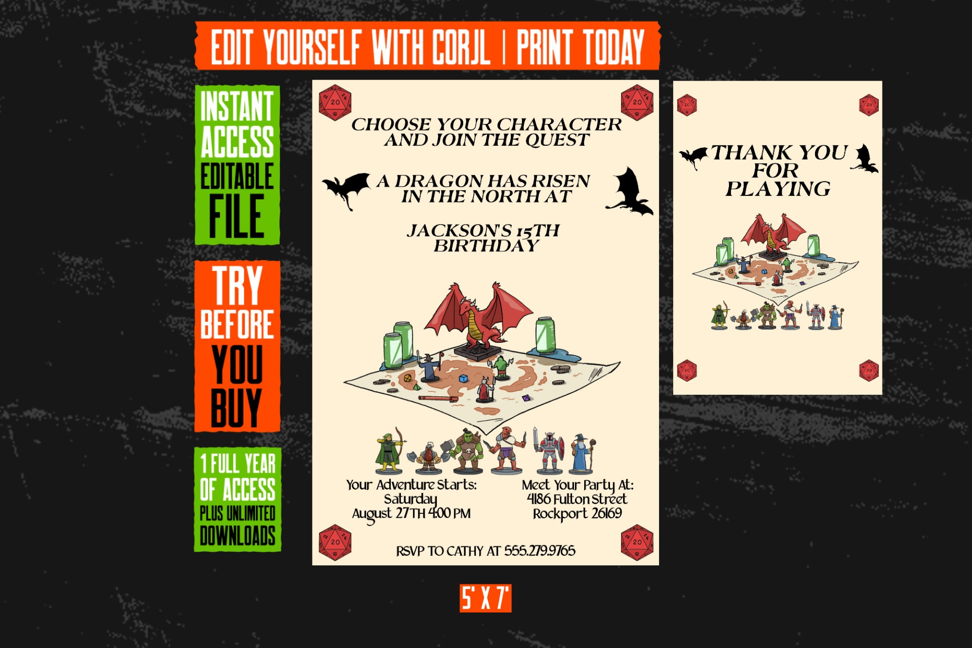 D&D Invitation, Dungeons and Dragons Digital Invite, Editable ...