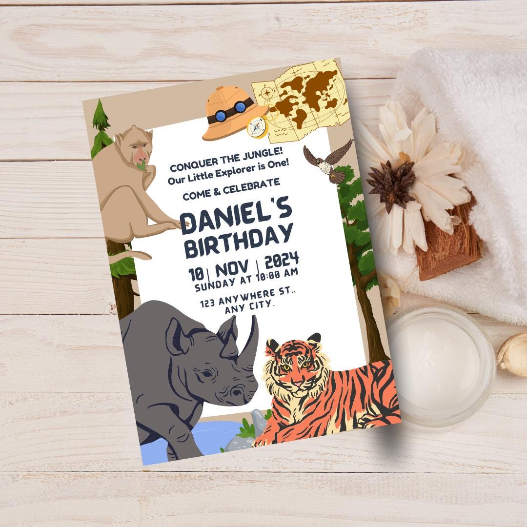 Safari Birthday Invitation Canva Template | Little Explorer Quest Theme ...