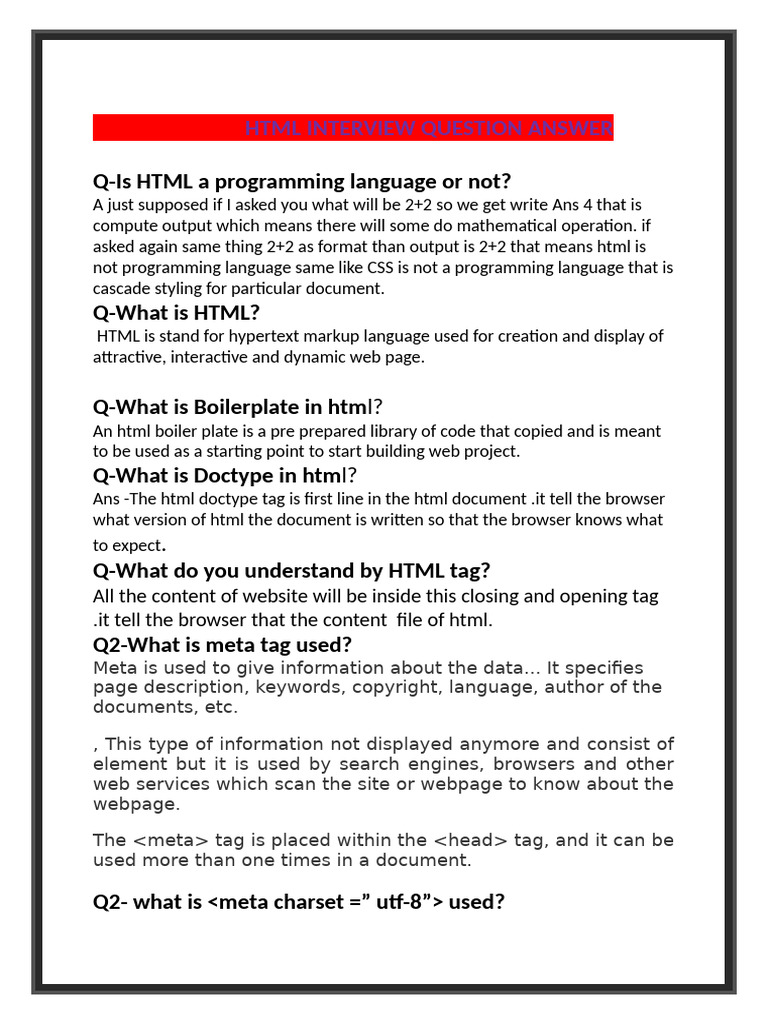Best HTML Question and Answers | HTML Interview Prepration ...