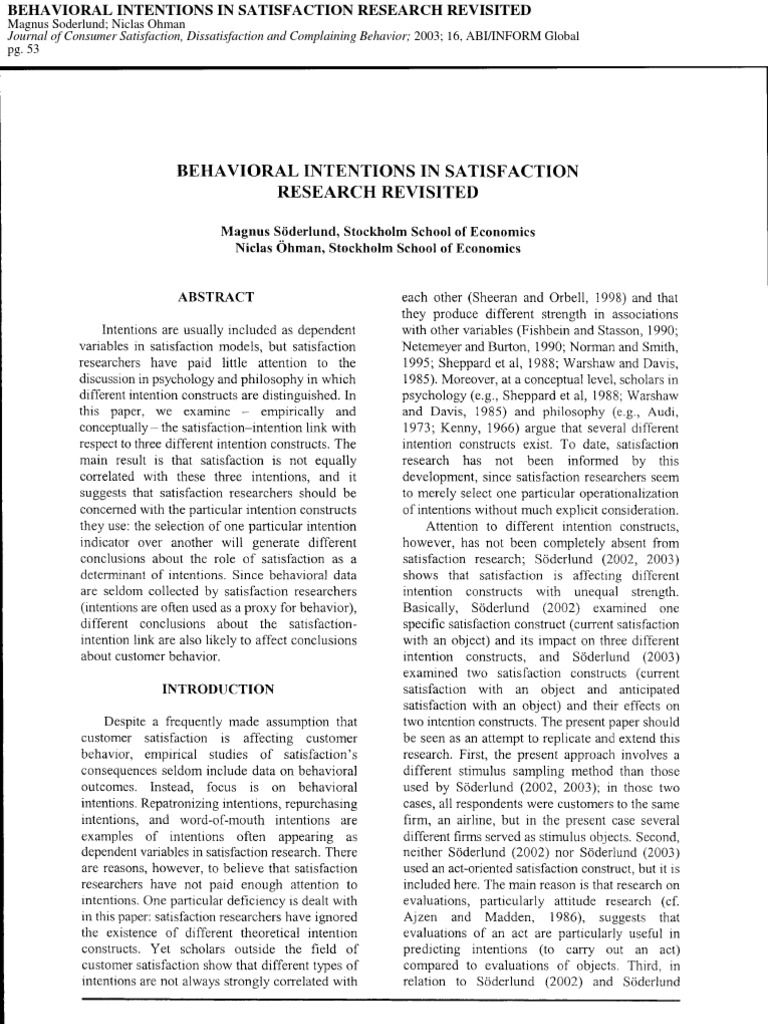 Behavioral Intentions in Satisfaction Research Revisited | PDF
