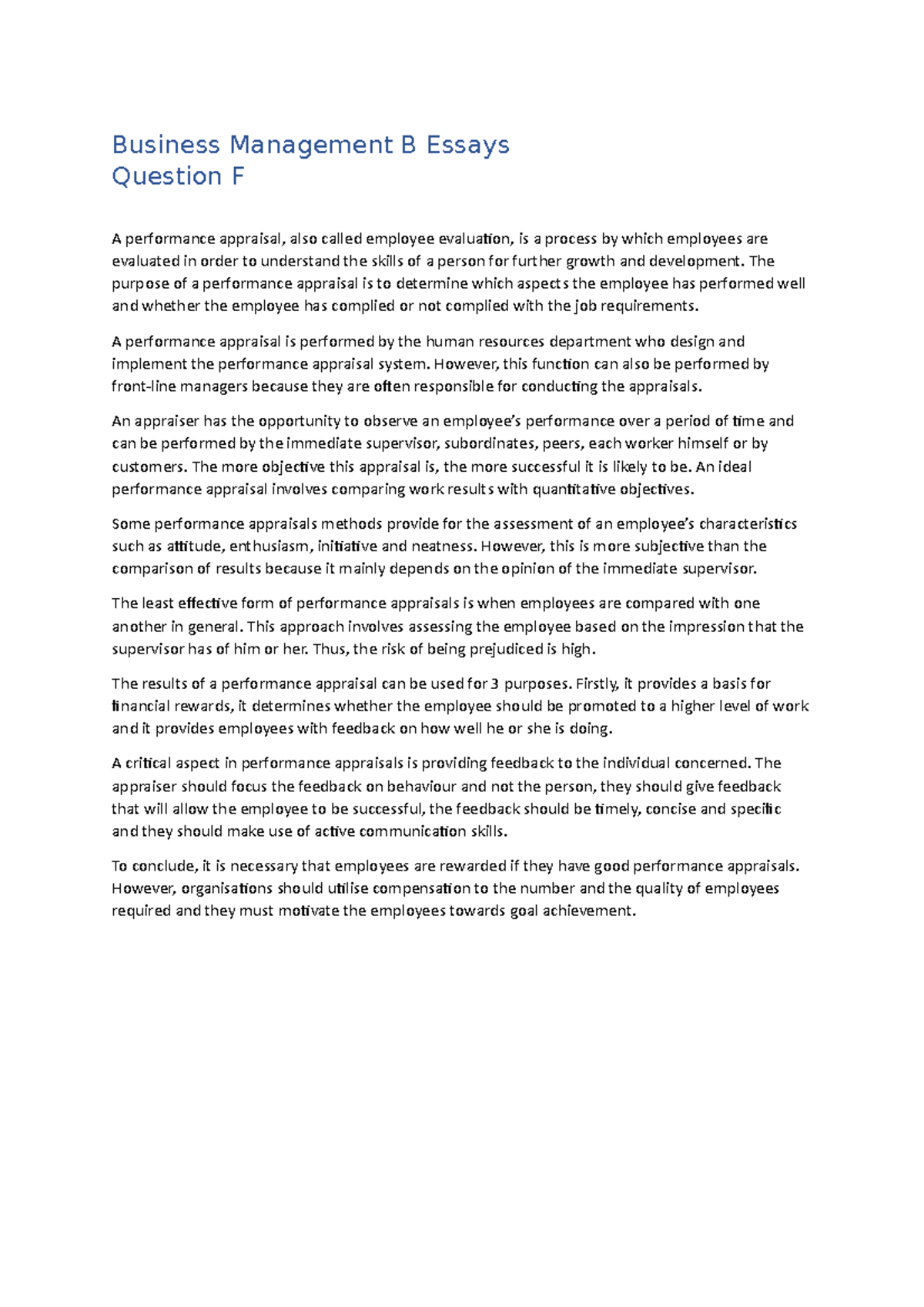 BUS MAN 5112 B Essay Question F - Business Management B Essays Question ...