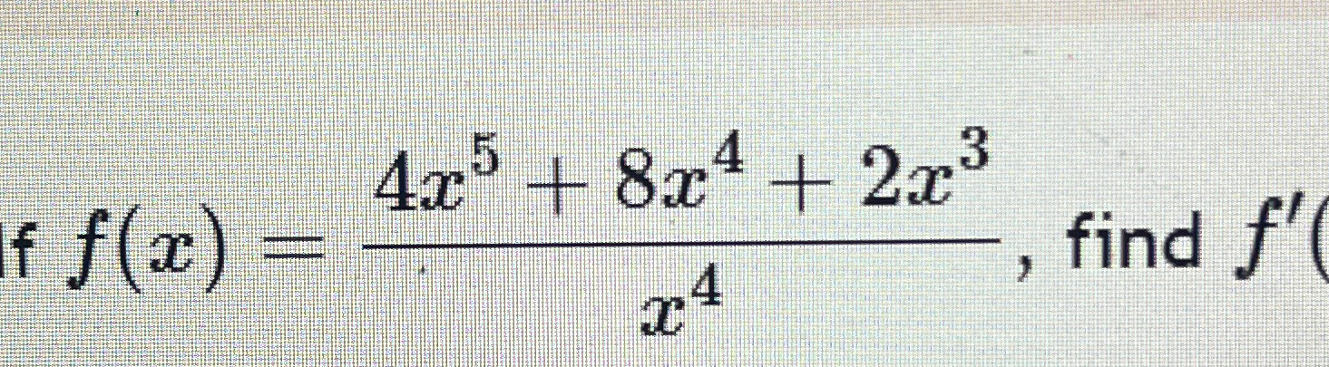 Solved f(x)=4x5+8x4+2x3x4, find f' | Chegg.com