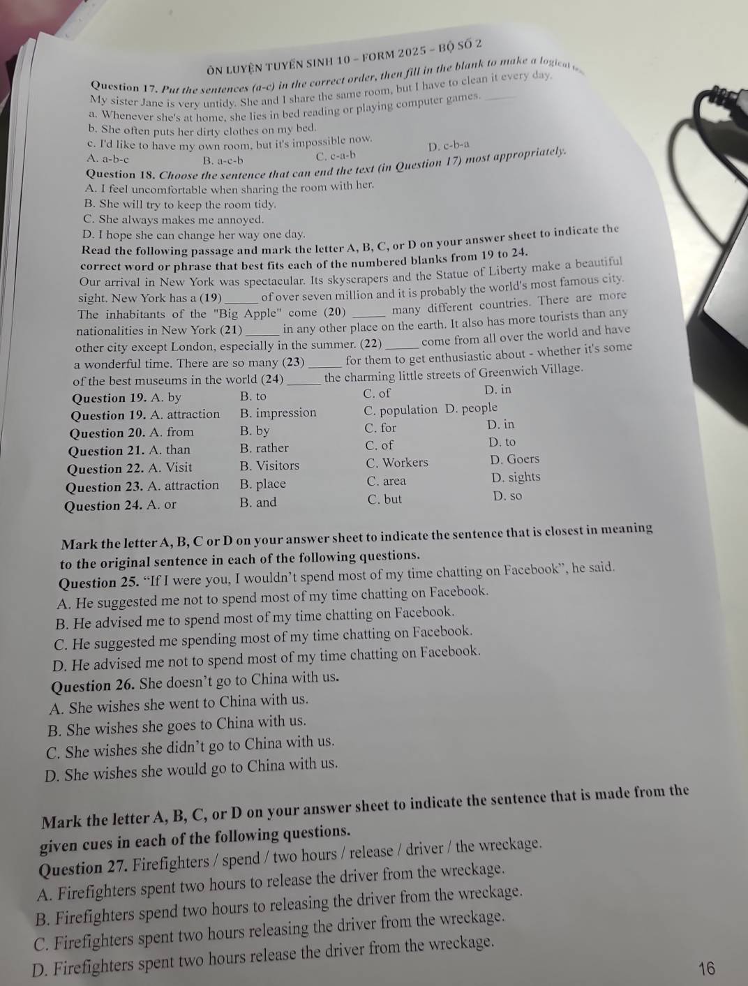 Giải quyết:Ôn luyện tuyển sinh 10 - form 2025 - bộ số 2 Question 17 ...