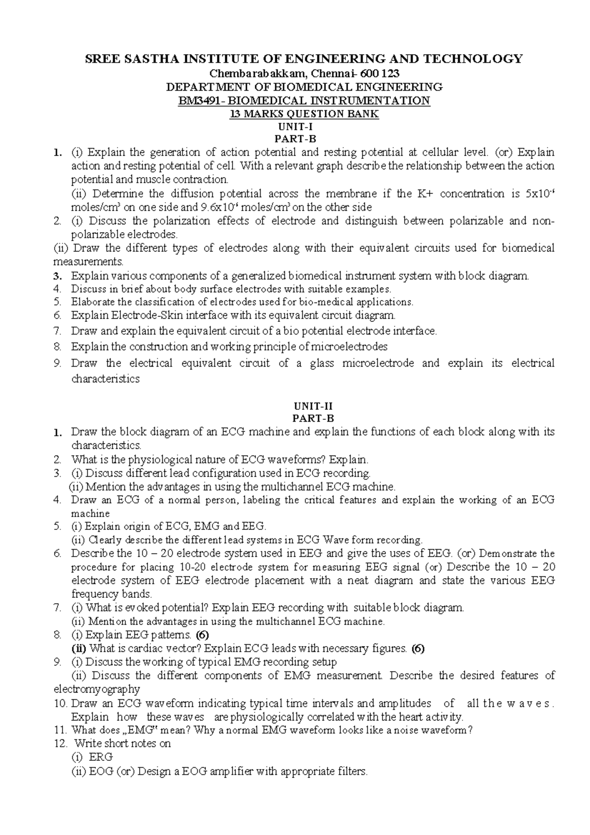 13 MARKS QUESTION BANK - BIOMEDICAL INSTRUMENTATION (BME) - Studocu