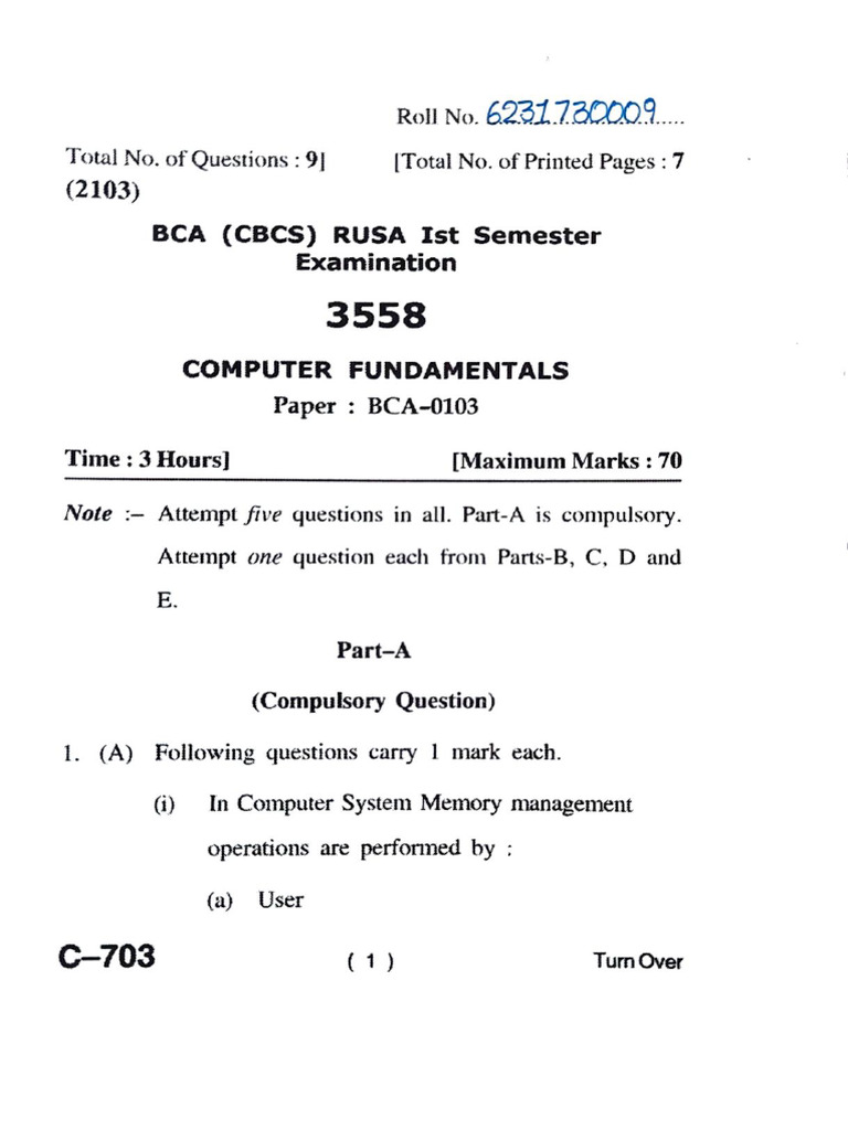 BCA 1st Semester Computer Fundamentals Question Paper (2023) | PDF ...