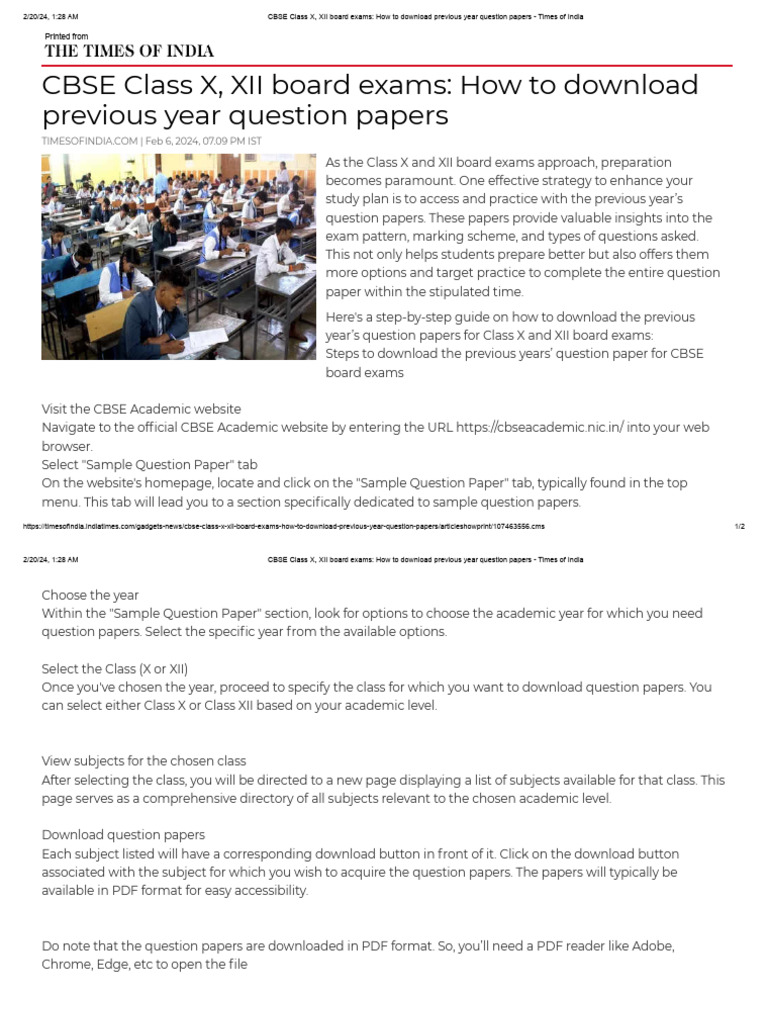 CBSE Class X, XII Board Exams - How To Download Previous Year Question ...