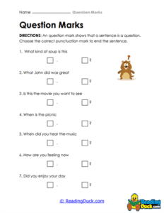 Question Marks Worksheets | Punctuation | Reading Duck.com