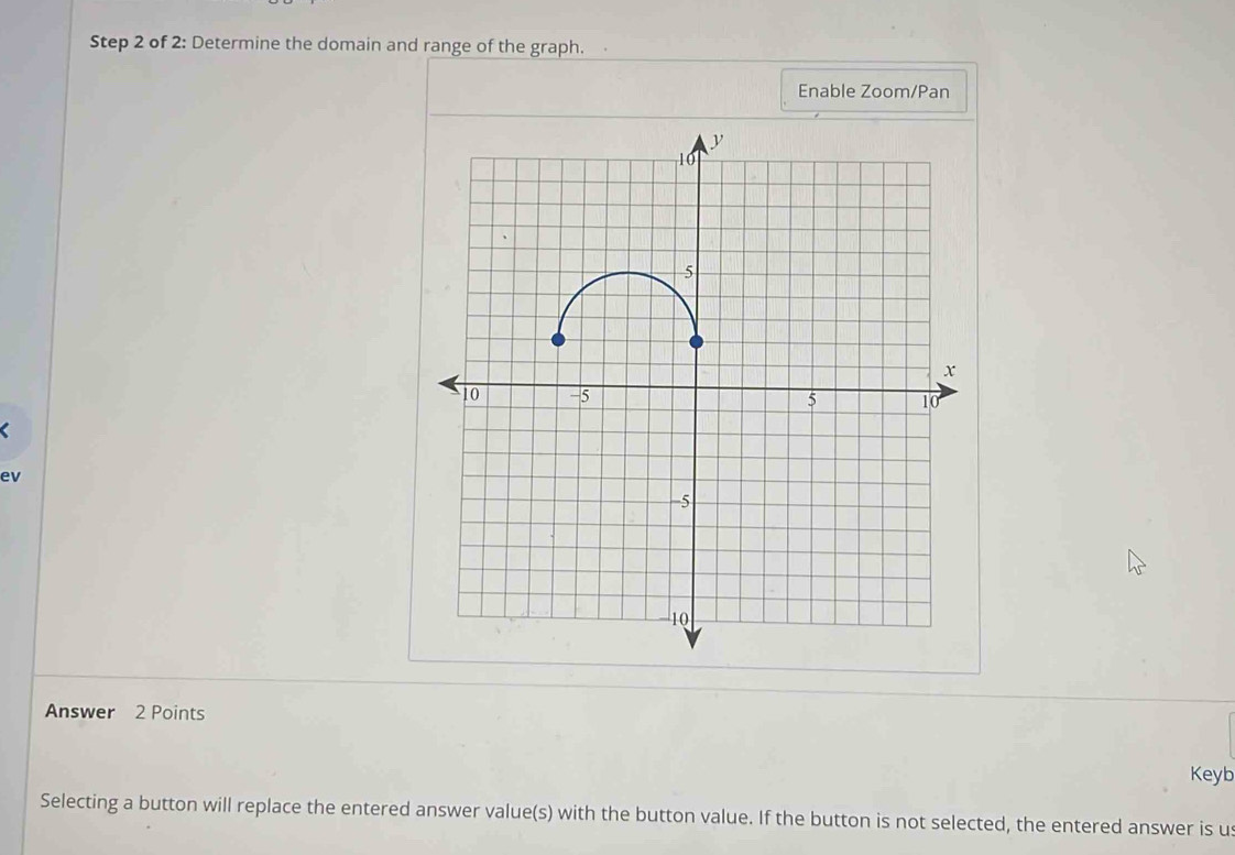 Solved: of 2: Determine the domain and range of the graph. Enable Zoom ...