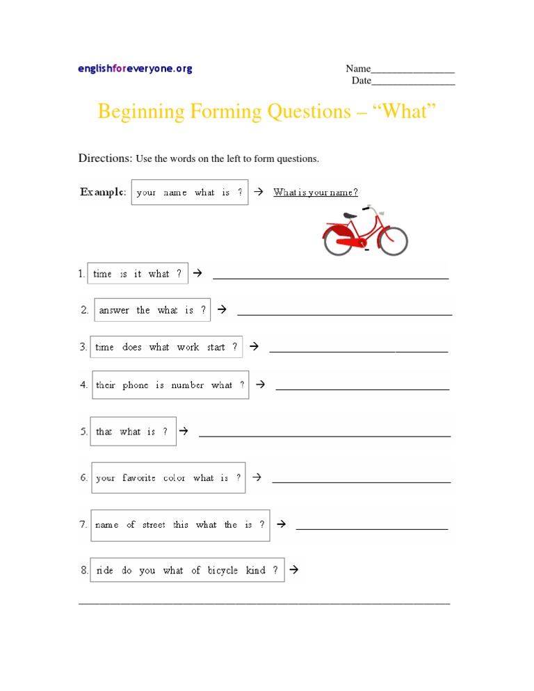 How To Form Wh Questions In English - Richard Spencer's English Worksheets