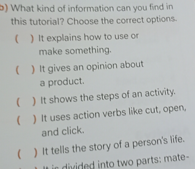Solved: What kind of information can you find in this tutorial? Choose ...