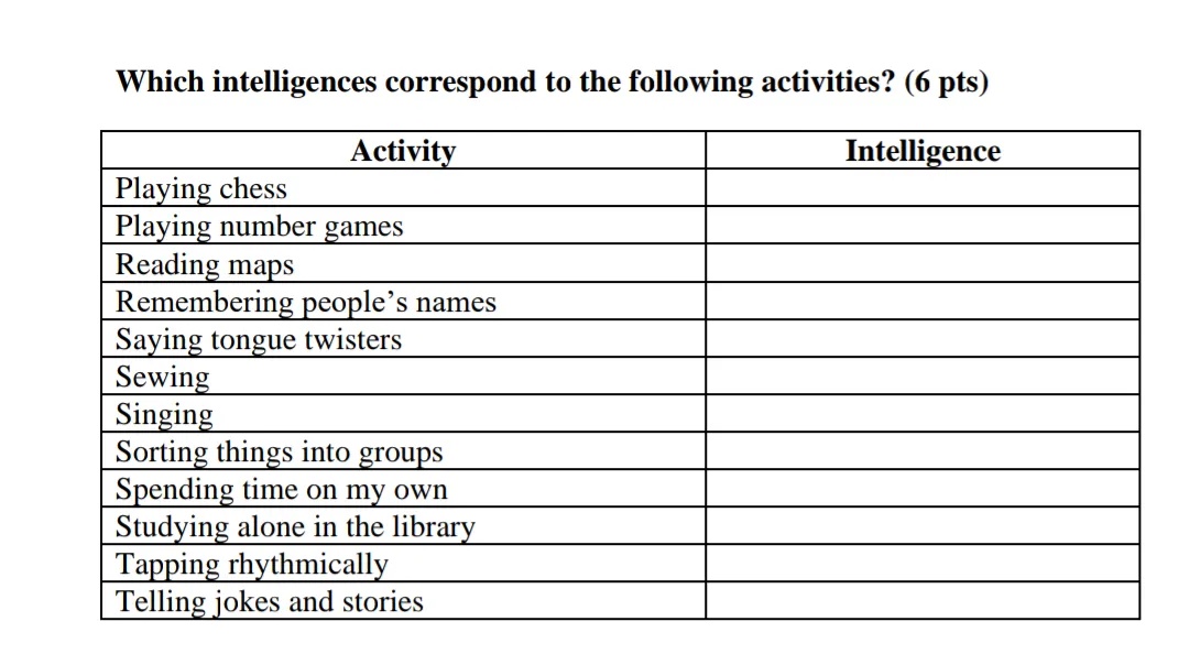 MULTIPLE INTELLIGENCES ACTIVITIES.pdf | Intelligence | Reading ...