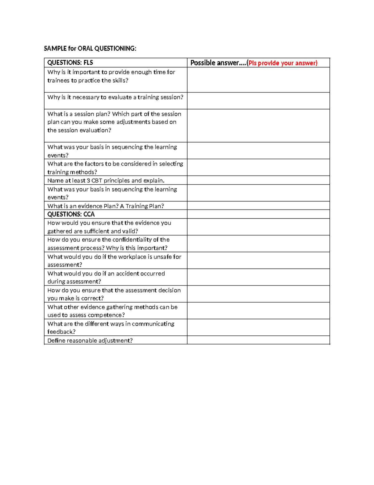 Sample-ORAL- Questioning - SAMPLE for ORAL QUESTIONING: QUESTIONS: FLS ...