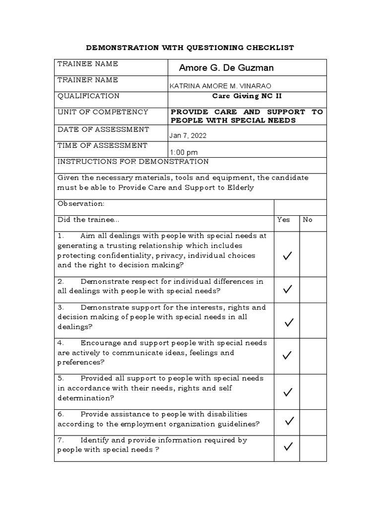 Sample Observation Checklist With Questioning Demonstration | PDF ...