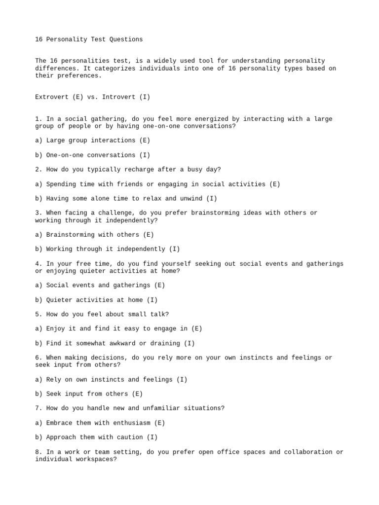 Personality Test Questions List | Download Free PDF | Learning | Social ...
