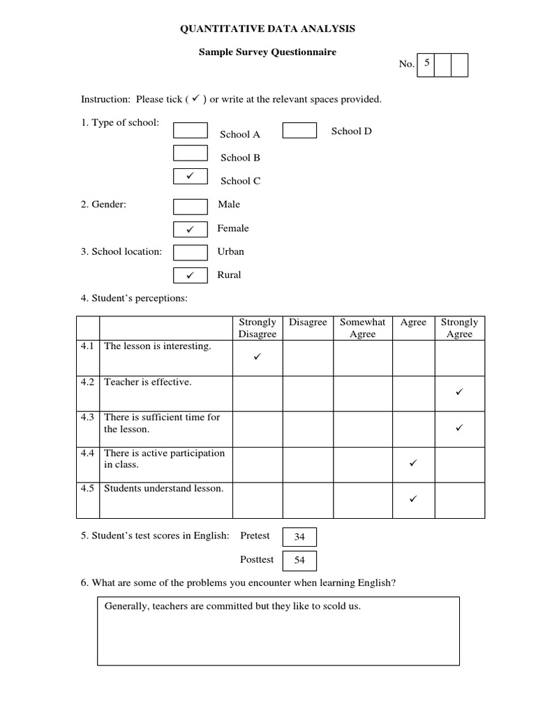 Quantitative Data Analysis Sample Survey Questionnaire | PDF