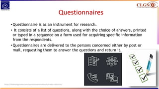 Data Collection survey instruments & methods of Questionnaire | PPT
