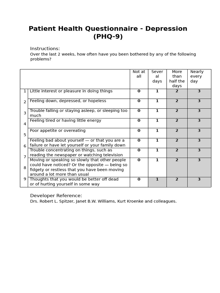 Patient Health Questionnaire 9 - Depression (PHQ-9) | PDF | Positive ...