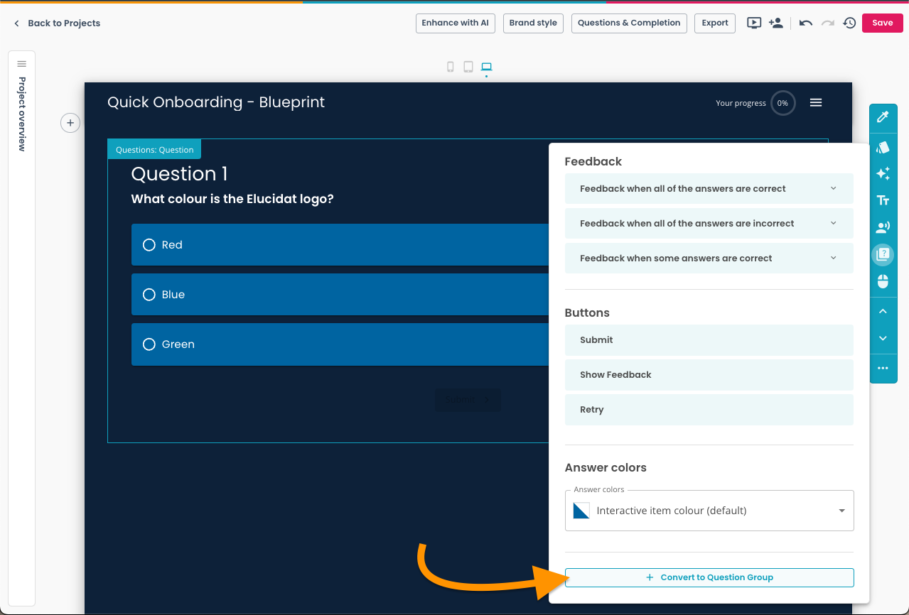 Creating a group of questions – Elucidat Create Help Center