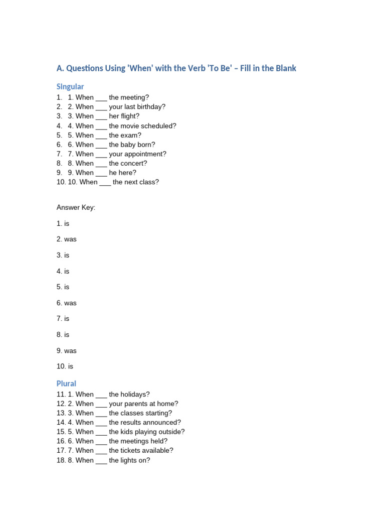 11 Questions Using When | PDF | Moveable Holidays | Summer Holidays