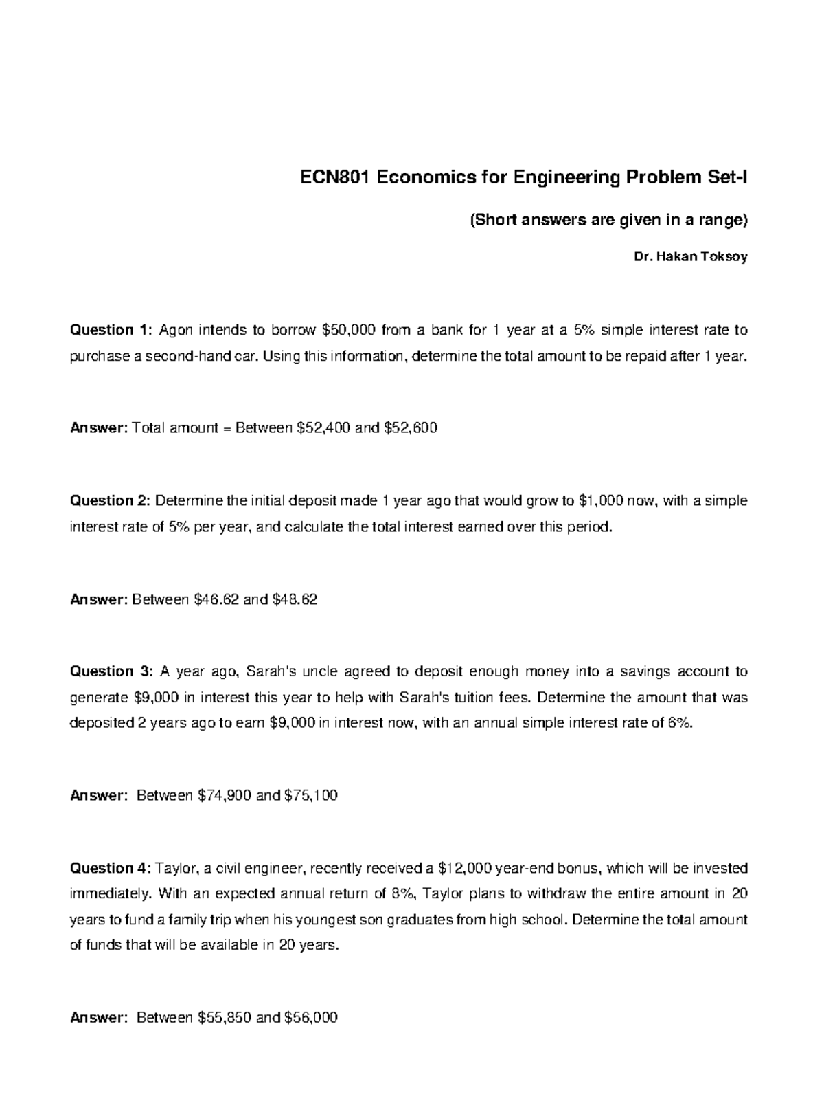 ECN801 Practice Questions - Economics for Engineering - Studocu
