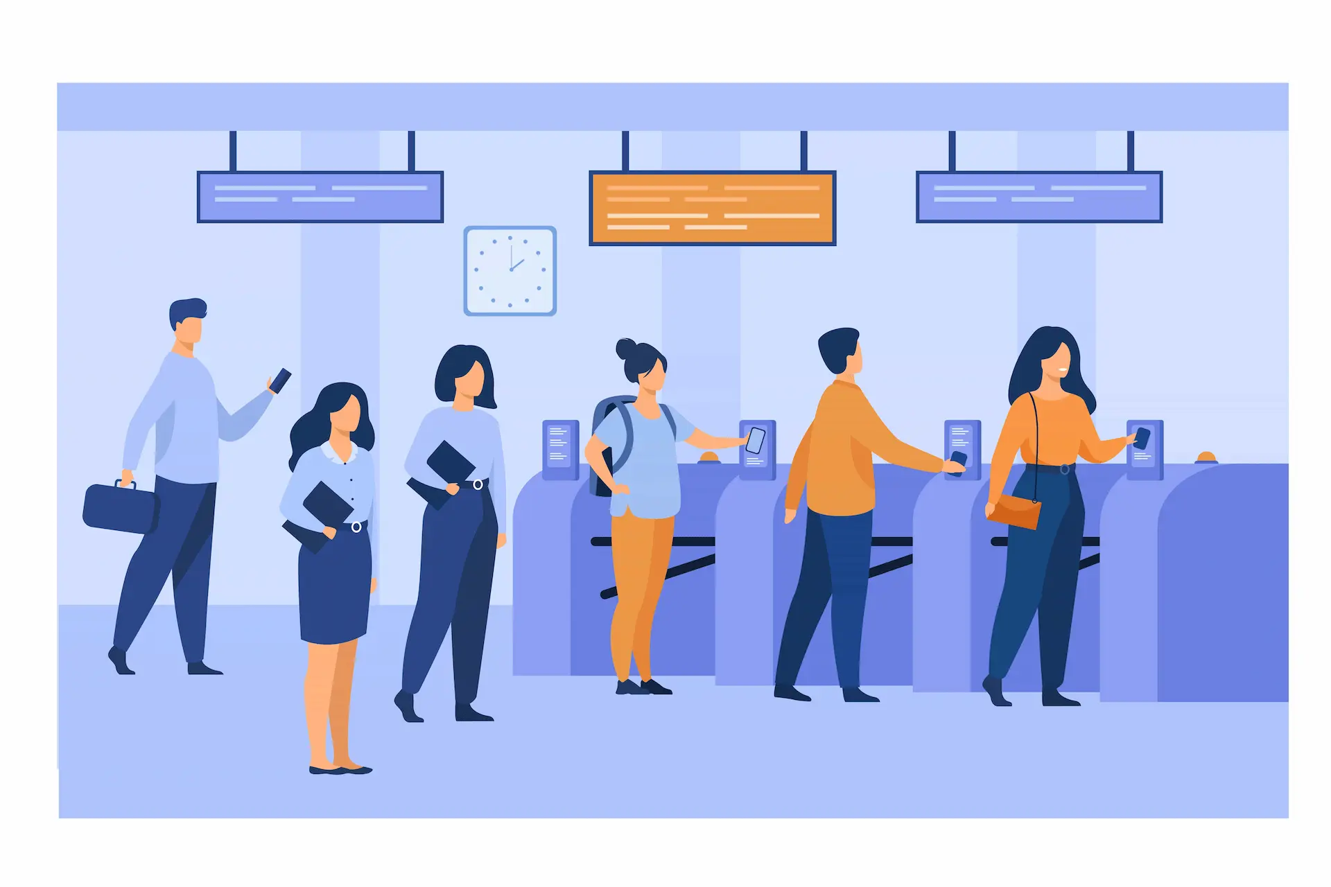 Premium Vector | People are waiting in line near atm machine to ...