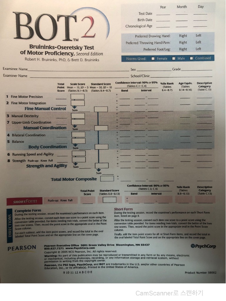 Bruininks-Oseretsky Test of Motor Proficiency 2nd Edition BOT2 Scoring ...