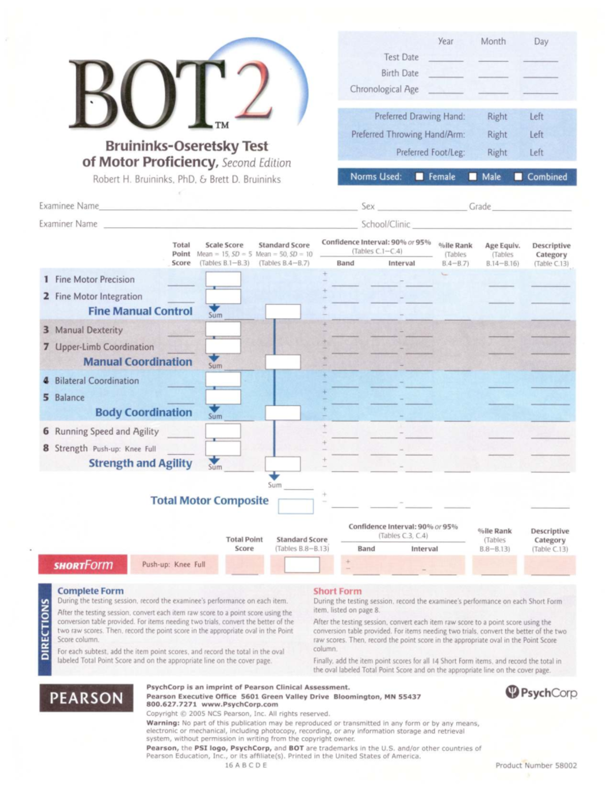 BOT-2 - Bruininks-Oseretsky Test of Motor Proficiency | Second Edition ...