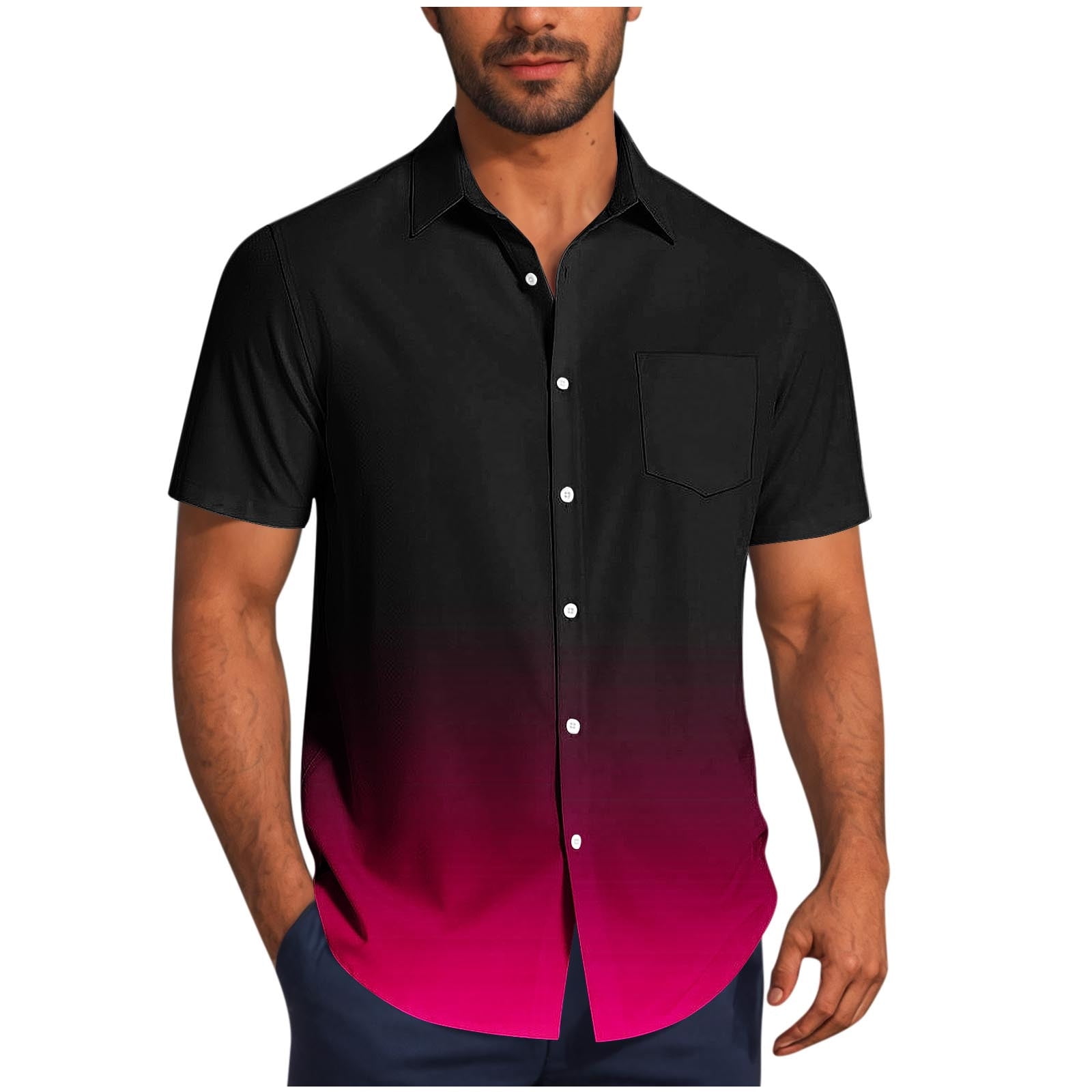 Big & Tall Men's Gradient Short Sleeve Button Down Shirts Summer Beach ...