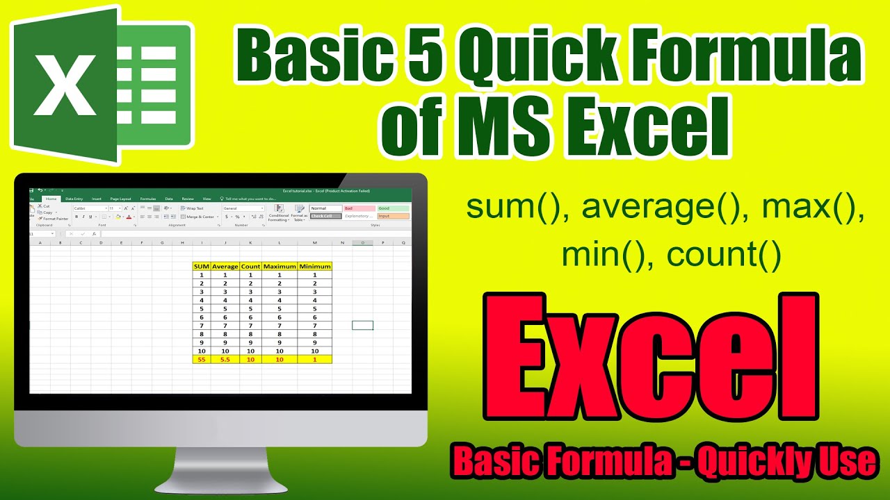 Basic 5 Quick Formula of MS Excel || MS Excel Tutorial - YouTube