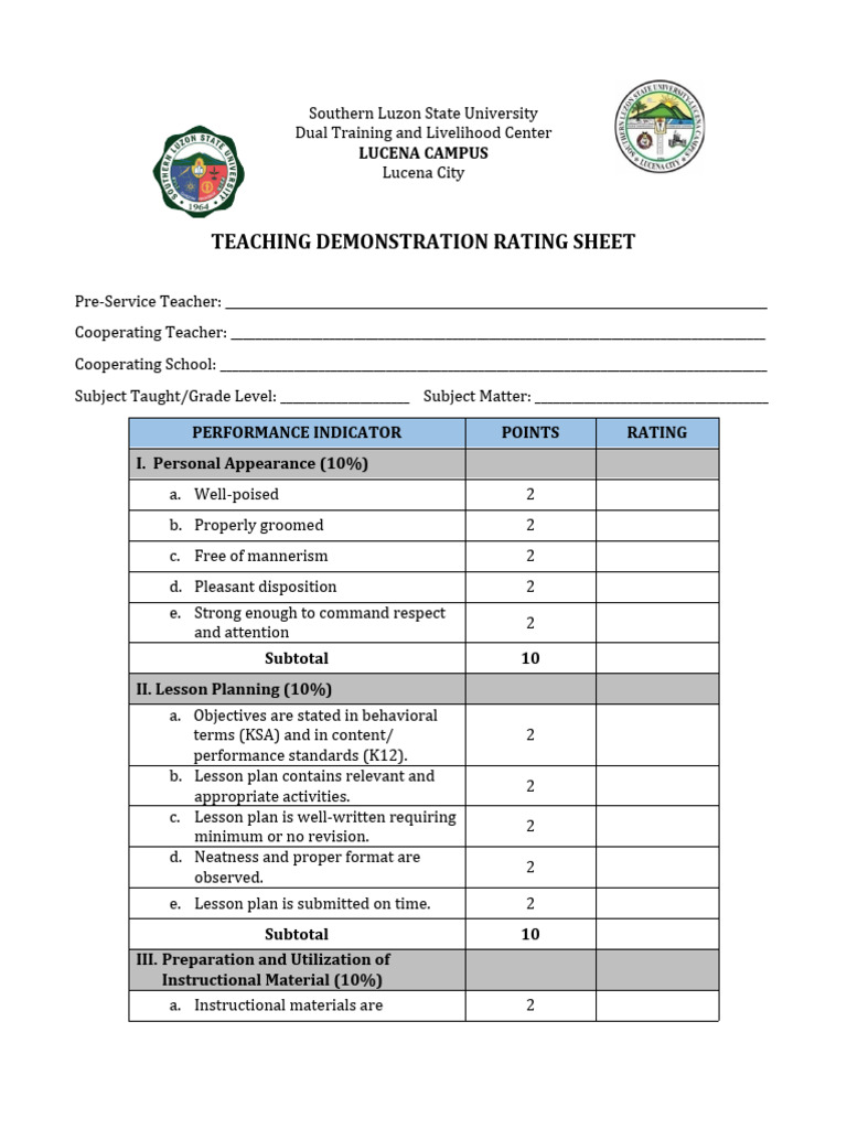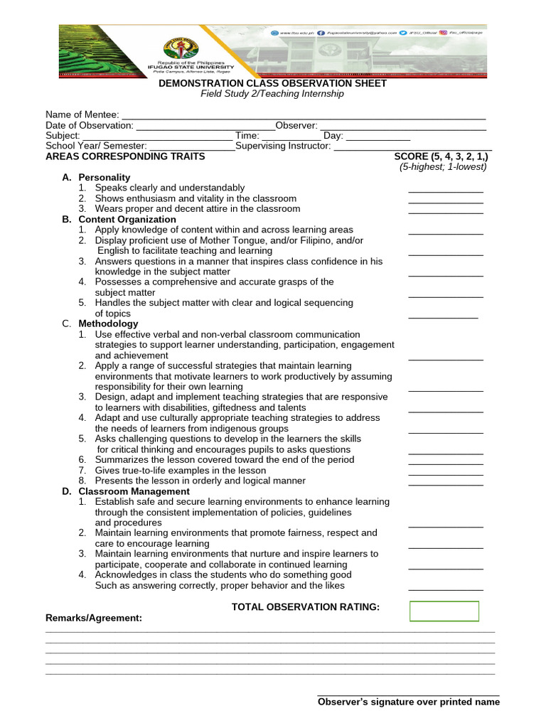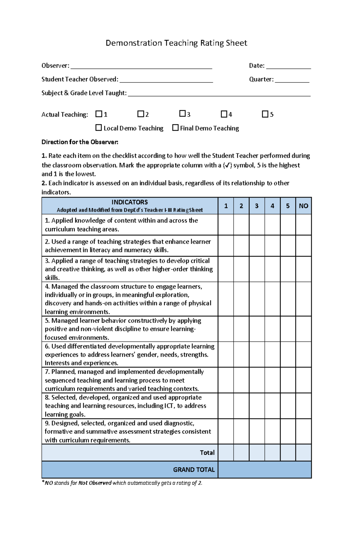 Teaching Demonstration Rating Sheet | PDF | Lesson Plan | Classroom ...