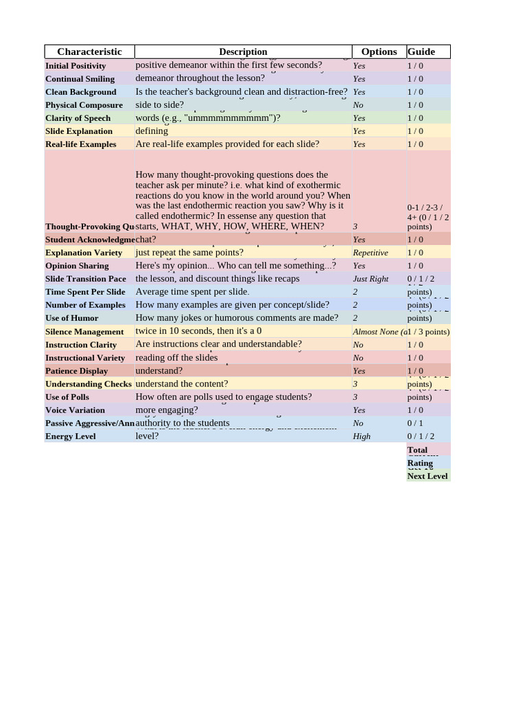 The Rating Sheet to Improve the Students - Demonstration Teaching ...