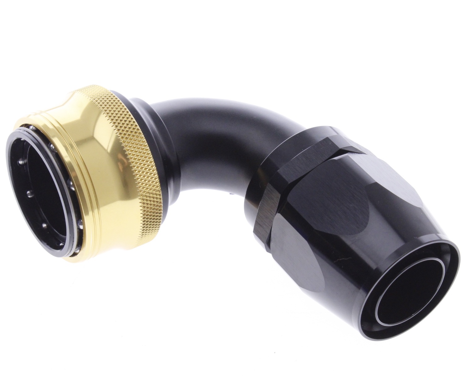 90° Quick Connect Hose Ends -Black/Gold - AN20 | Qualitec.dk