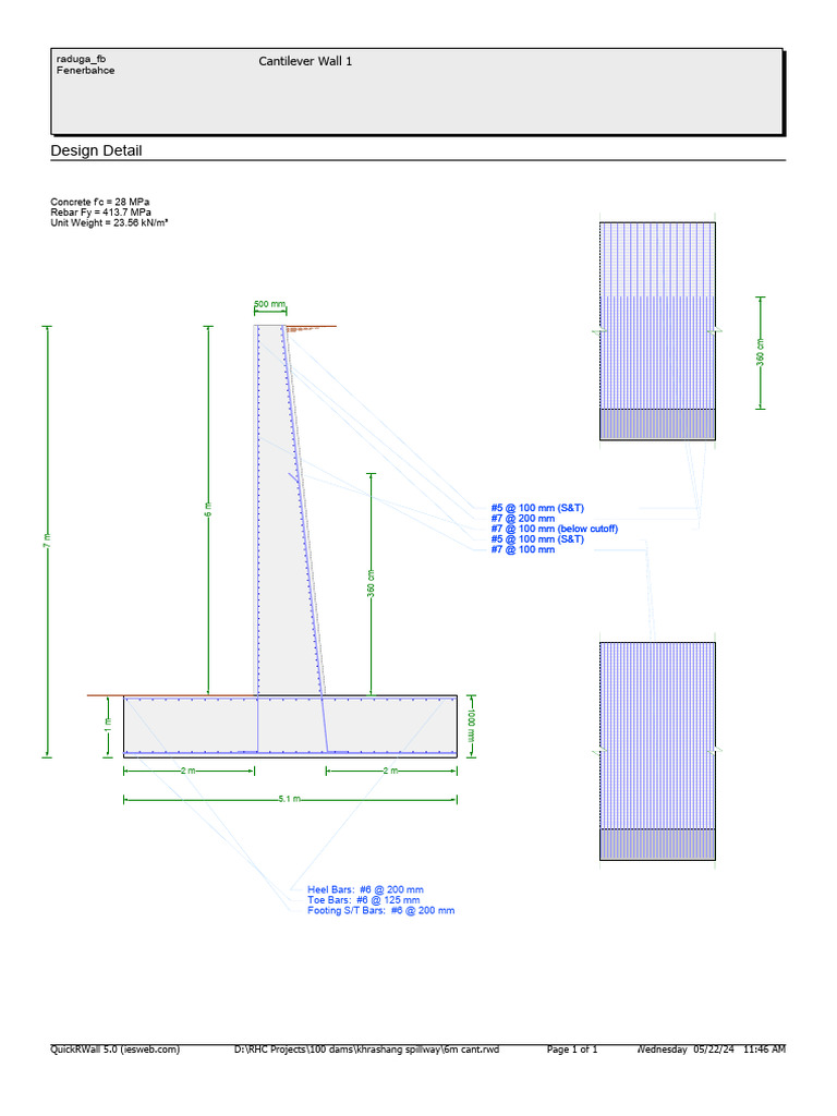 Cantilever Retaining Wall Design Example | Part 4 | Reinforcement ...
