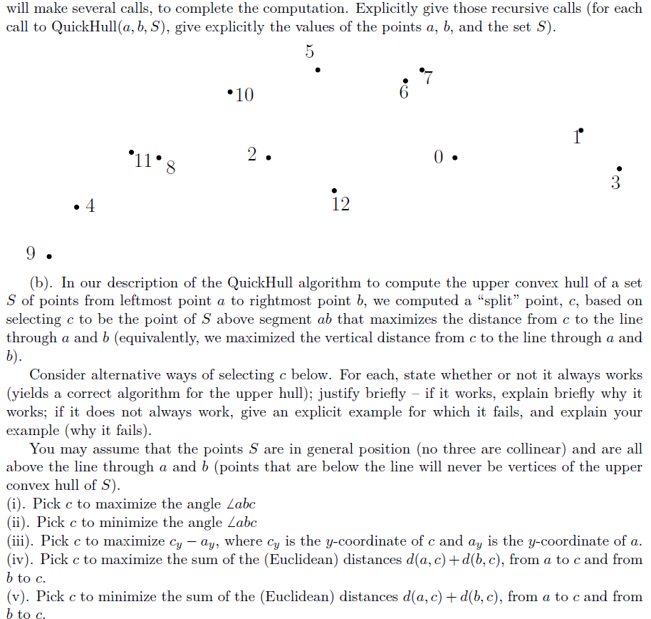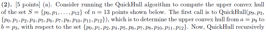 Solved (2). [5 points ] (a). Consider running the QuickHull | Chegg.com