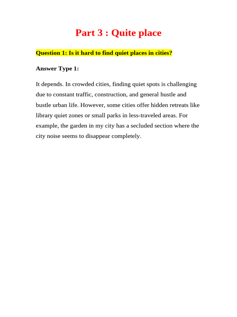 Describe a quiet place IELTS speaking cue card and Follow-up questions ...