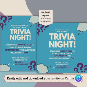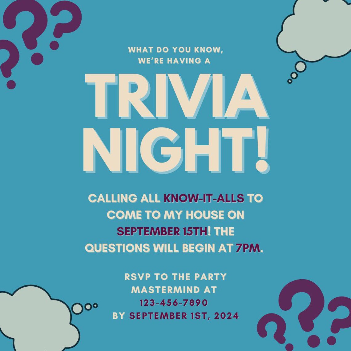 Trivia Night Party Digital Invite | Customizable and Easy to Edit ...