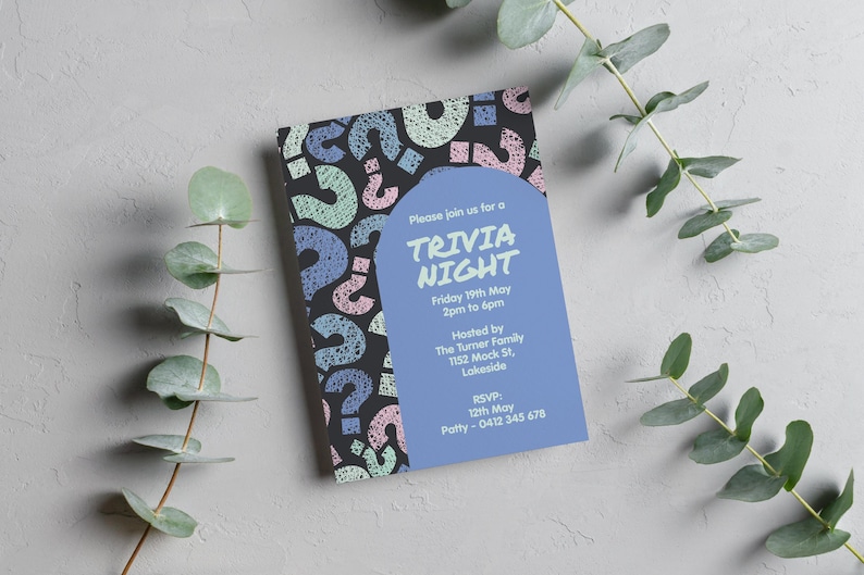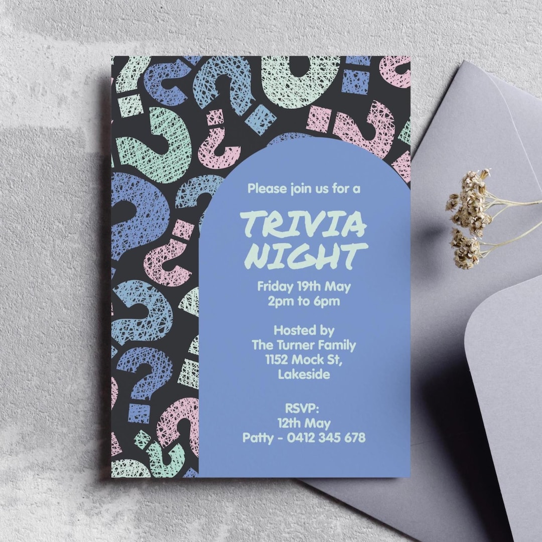 Editable Trivia Night Invitation: DIY Quiz Birthday Party Template (A5 ...