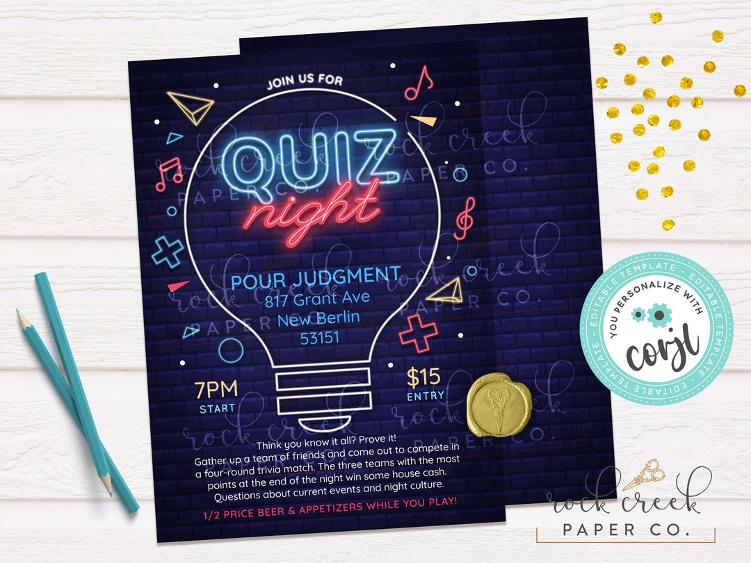 Trivia Night Invitation Printable Pub Quiz Flyer Editable Template ...
