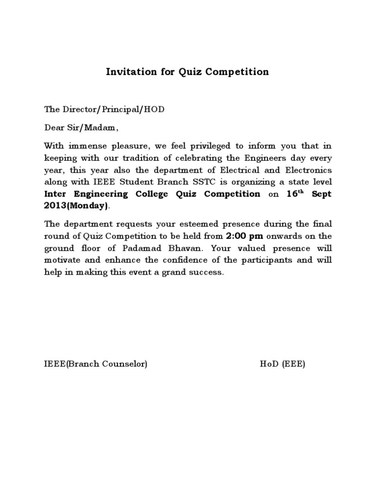 Letter Of Invitation For Quiz Competition (10 Samples)