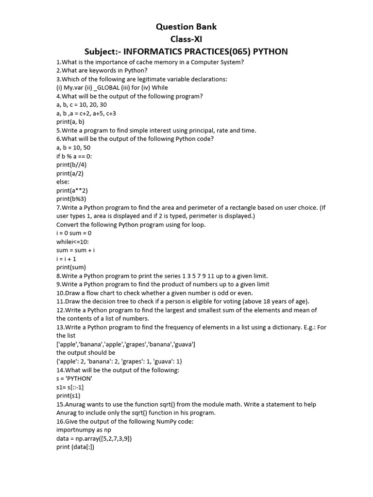 python question bank | PDF | Python (Programming Language) | Computer ...