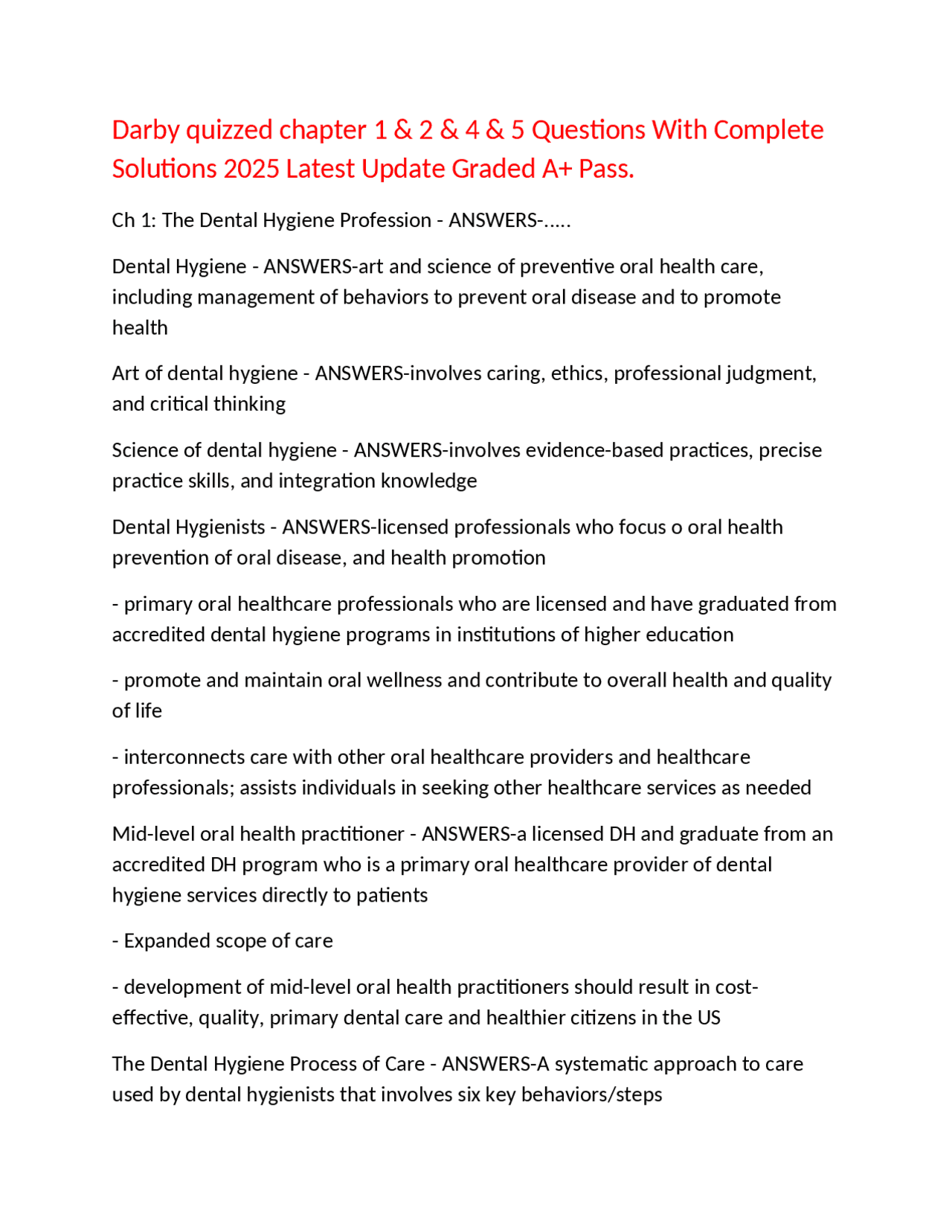 Darby quizzed chapter 1 & 2 & 4 & 5 Questions With Complete Solutions ...