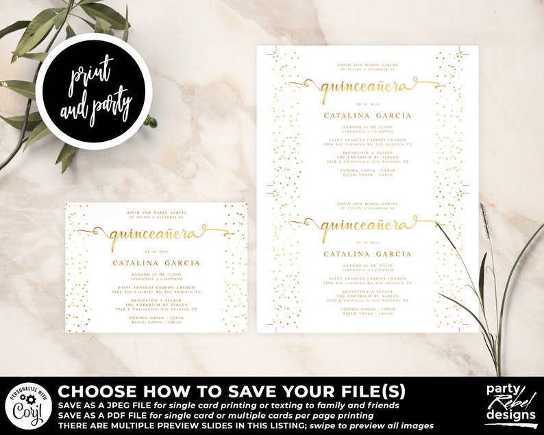 Gold Quinceañera Invitation Template Instant Download, Mis Quince, Mis ...
