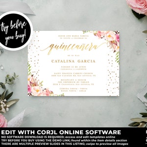 Quinceañera Invitation Template Instant Download, Mis Quince, Floral ...