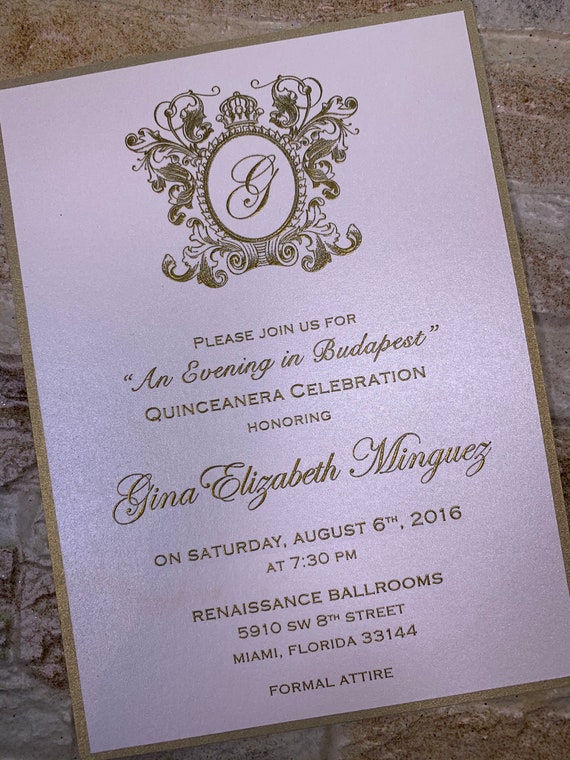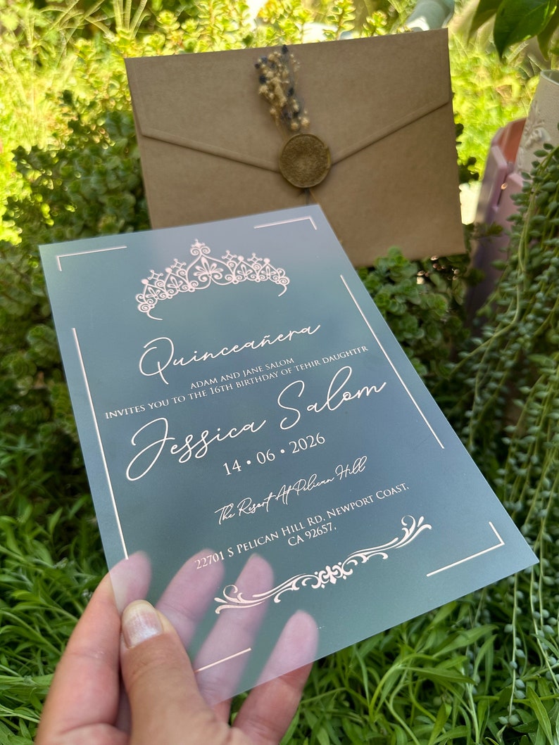 Elegant Acrylic Quinceanera Invitation: Gold Crown, Cream Envelope - Etsy