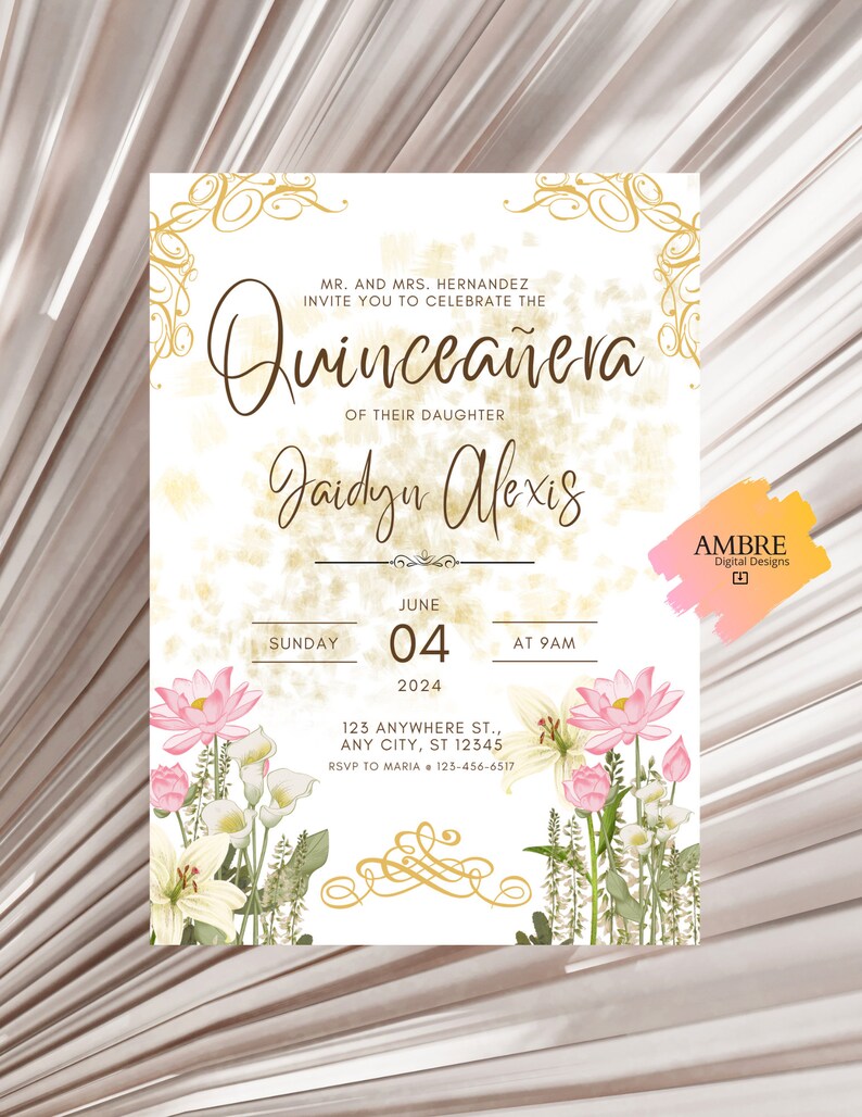 Floral Quinceañera Invitation Template – Elegant Sweet 15 (digital ...
